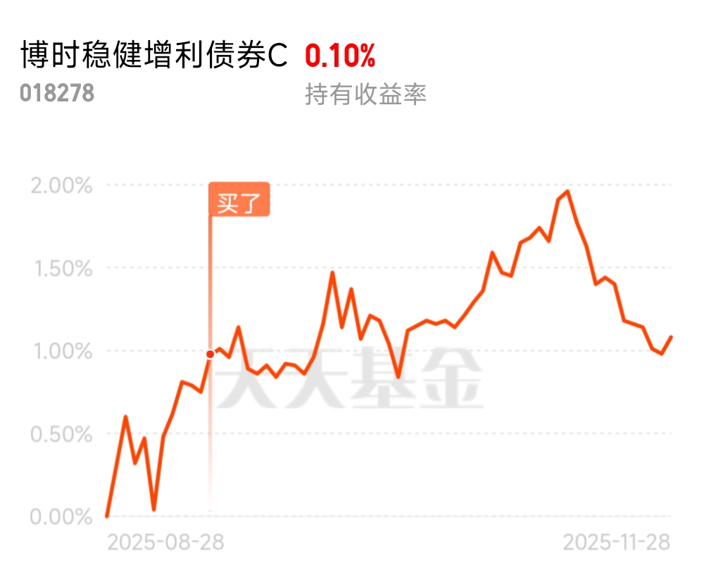 固收+的好处就是抗跌,万一市场回调也不怕。这基近一年收益超过8%,表现可以$博时稳健增利债券C$