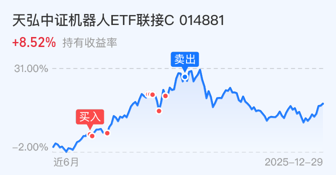 机器人板块近来不断放量确认了上行趋势,所以昨日虽然受市场拖累但尾盘也算是稳住了。今日低开早盘维持窄幅震荡,量能跟上盘中异动快速高走,截至发稿涨势良好。板块位置不算高,如今刚转为向上,继续修复空间较大,可以继续看好。今日不动。$天弘中证机器人ETF发起联接C(OTCFUND|014881)$