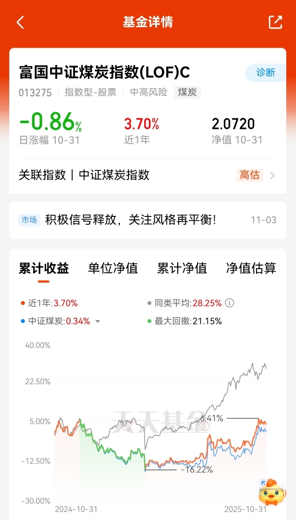 我持仓的广发新兴成长C偏成长,搭配富国中证煤炭C正好它近1月涨了10%,跟踪误差仅0.45%,重仓神华、陕煤这些核心资源股,顺周期+中特估逻辑稳得很!