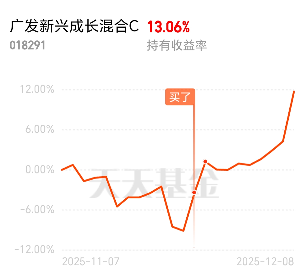 我持仓的$广发新兴成长混合C$ 聚焦于算力赛道,尤其侧重CPO这一高成长性环节。今天收盘大涨7.17%,这个涨幅相当优秀啊,我持仓收益都盈利超13%了。