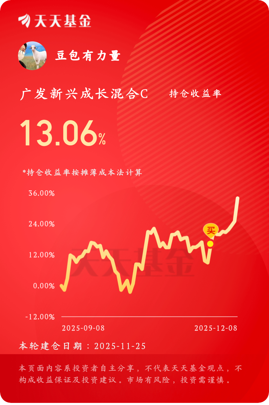 CPO太厉害了,$广发新兴成长混合C$ 连涨4天,今天又大涨了7.17%,近三个月的涨幅已经超过了30%,赚钱效应太好了!