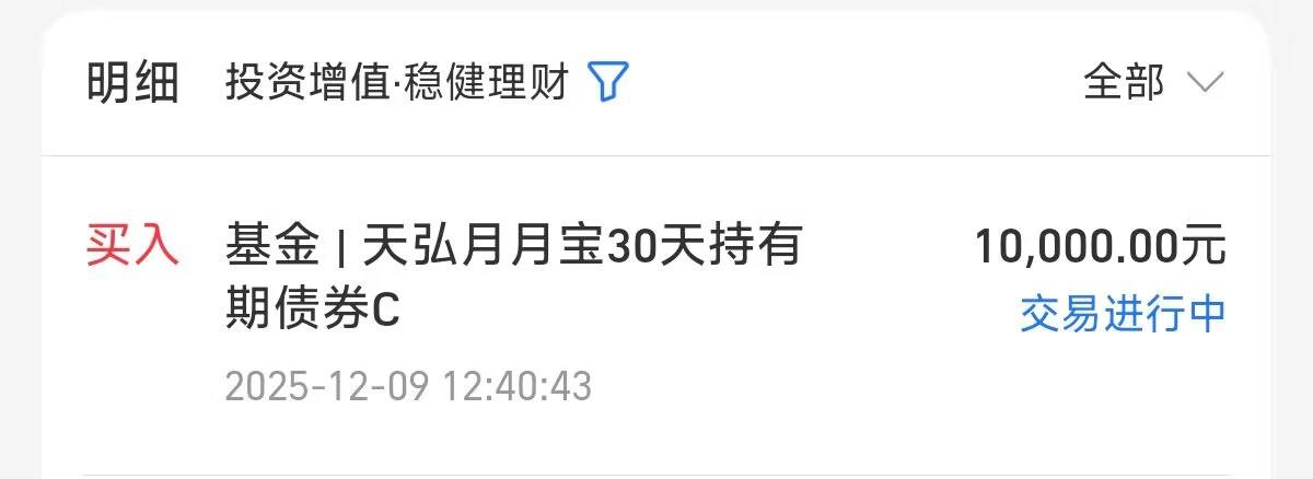 今日加仓$天弘月月宝30天持有期债券C(OTCFUND|022306)$10000元,昨天还说市场反复,今日板块轮动大盘就出现了一定的回踩。当前结构性市场,投资权益需确定主线,所以我还是稳中求进继续配置一些债券基金。月月宝作为一只短债基金,长短期业绩均比较优秀,产品收益稳定性强,从支付宝上的数据来看,近一年最大回撤仅为0.1%,10天就能完成修复了,低风险用户也是适宜的,用来作为底仓控制风险就非常不错。刚好有闲钱,就继续积累一点份额,毕竟稳稳的赚钱简直不要太香呀。