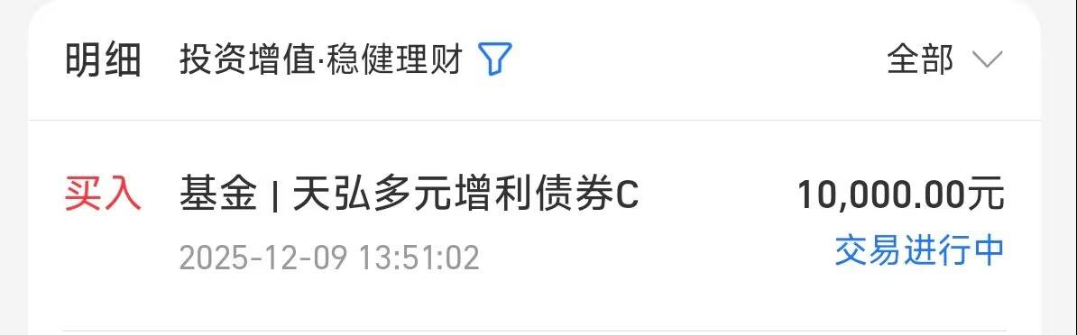 今日加仓$天弘多元增利债券C(OTCFUND|015525)$10000元,该基以稳健债券作为打底,又配置一定的权益来增强收益,既能享受稳稳的票息收入,市场回暖因配置一定股票也能立马跟上行情。真可谓是进可攻退可守,无论什么样的行情都比较适宜,特别是当前震荡市场,热点轮动快选择固收+产品投资起来也更简便。据悉该基股债主投银行和红利,年末防御板块一般表现会比较好,相应的产品投资性价比更高。目前来看该基近一年收益6.34%,长期收益佳,所以今日先建个底仓,之后再适时跟进。