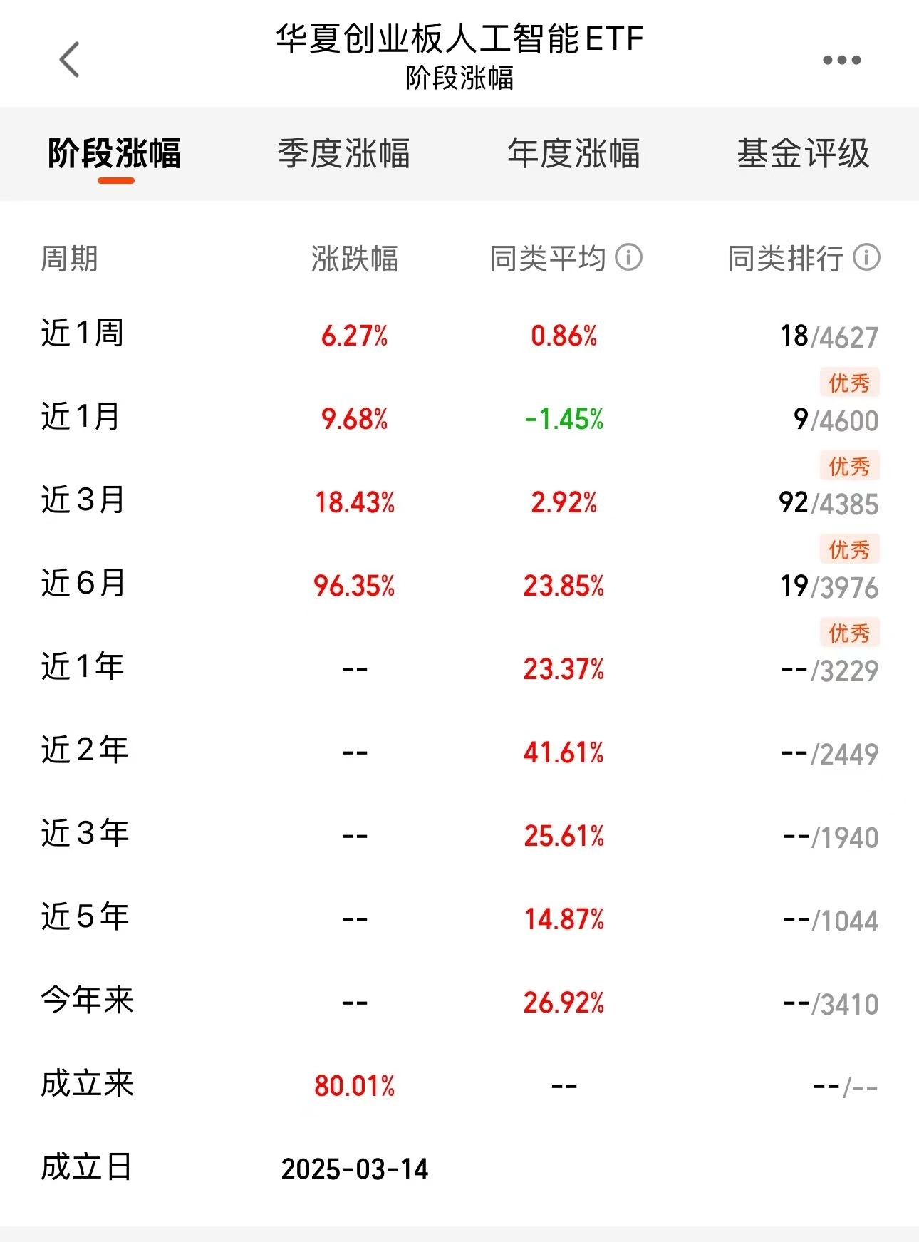 人工智能板块近期走势喜人,昨天收益5.06%,场内近一个月收益同类前9,$华夏创