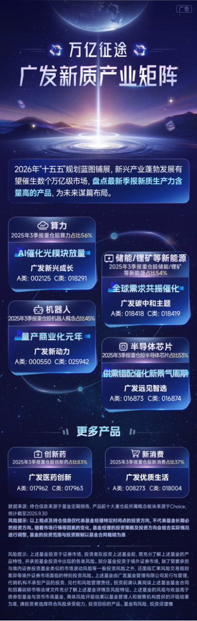 在相关平台上浏览时,我注意到广发基金有一组聚焦不同前沿赛道的主动权益产品,恰好形成了一个覆盖多个高景气方向的“组合图”,为希望布局未来的投资者提供了一种闭环式的选择思路。