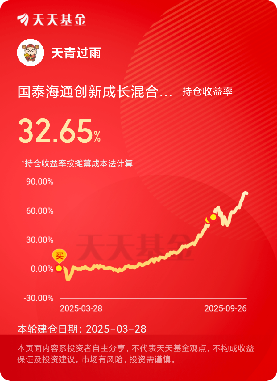 上周五虽然有一点调整,今天反弹势头挺不错$国泰海通创新成长混合发起C$ #晒收益#