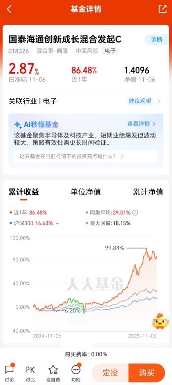 #四季度看好科技吗# $国泰海通创新成长混合发起C$ 最近市场震荡,不少人都在纠结:科技板块还能上车吗?我最近一直在关注$国泰海通创新成长混合发起C$ ,这只基金近一年收益86.48%,远超同类平均的29.01%,最大回撤18.15%,在科技基金里表现相当稳健。