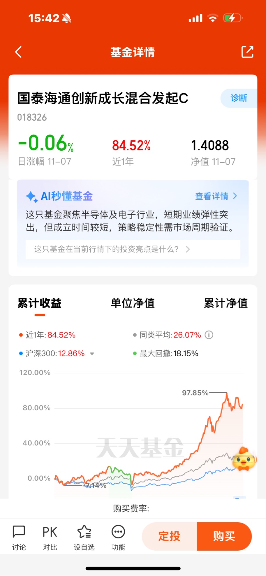 今年以来,我一直关注国泰海通创新成长C(018326)这个科技基,期间即使市场出现波动,整体的持有收益依然可观。步入四季度,虽然科技板块有所调整,但我依旧看好科技产业的发展,主要基于以下几个方面: