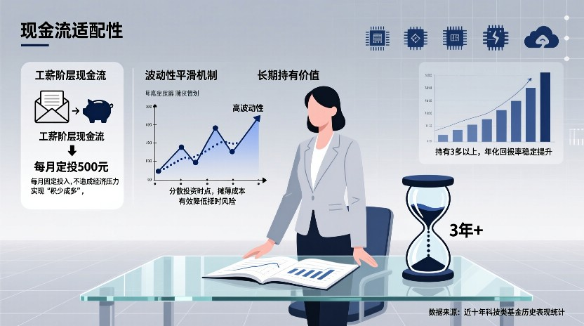 首先,定投符合工薪阶层的现金流特点。每月固定投入,既不会造成经济压力,又能实现“积少成多”的效果。对于普通投资者而言,定投是参与高风险高回报的科技板块的理性方式。