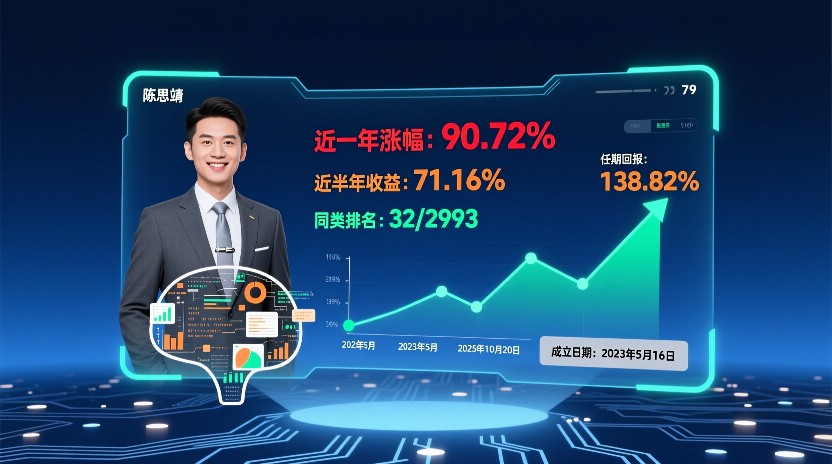 最初吸引我的是这只基金亮眼的业绩表现。截至2025年10月20日,该基金近一年涨幅高达90.72%,近半年收益达到71.16%,在同类产品中排名前列(近一年排名32/2993)。这样的数据背后,是基金经理陈思靖及其团队出色的投研能力。