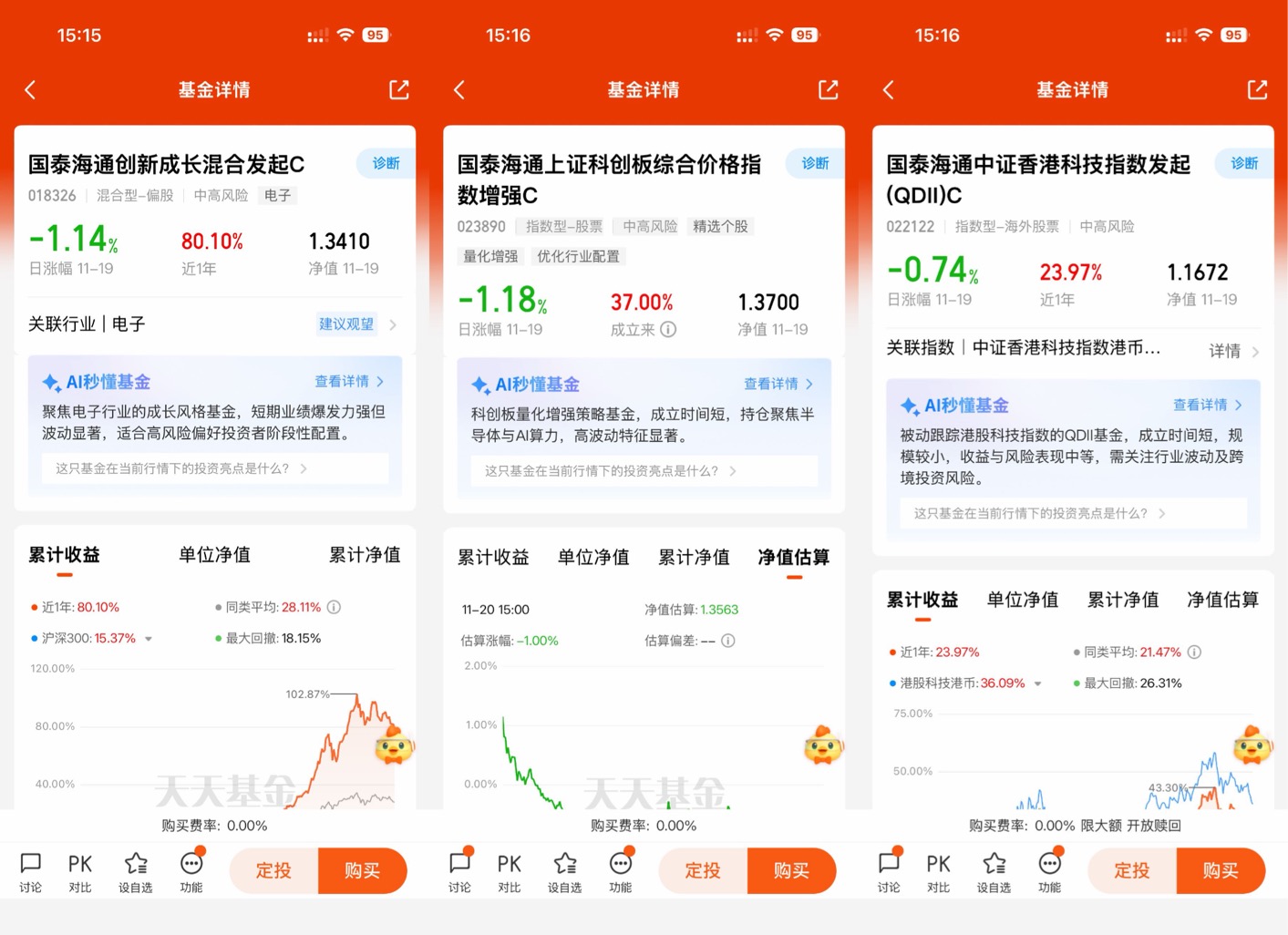 除了半导体这个硬核基础,国泰海通创新成长混合基金的持仓还搭配了像环旭电子、立讯精密这类能最先受益于“人工智能+”发展的消费电子龙头企业。这种“基础设施+核心应用”的均衡配置思路,能在一定程度上降低组合的波动性,对于我这种中等风险承受能力的投资者来说,是比较合适的 。基金经理陈思靖在新兴成长领域的波段操作和细分行业轮动能力,也是我看重的点,毕竟科技板块内部轮动也很快 。截至11月19号,这只基金年内收益超76%,近1年收益近80%,在同类中排名前10% ,至少说明在把握这轮科技浪潮上,其策略是有效的。