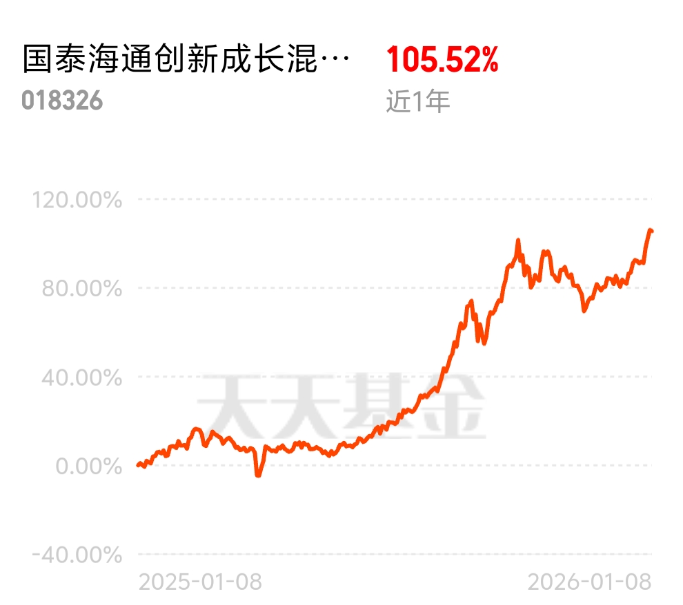 $国泰海通创新成长混合发起C$锚定AI存力赛道,近一年收益105.52%。动态调