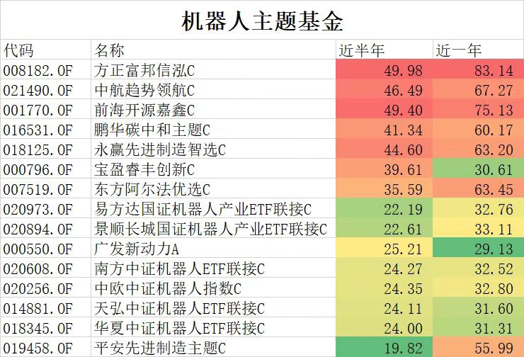 今年以来机器人板块内部轮动快,考验基金动态调整能力。信泓机器人主题近一年收益约8
