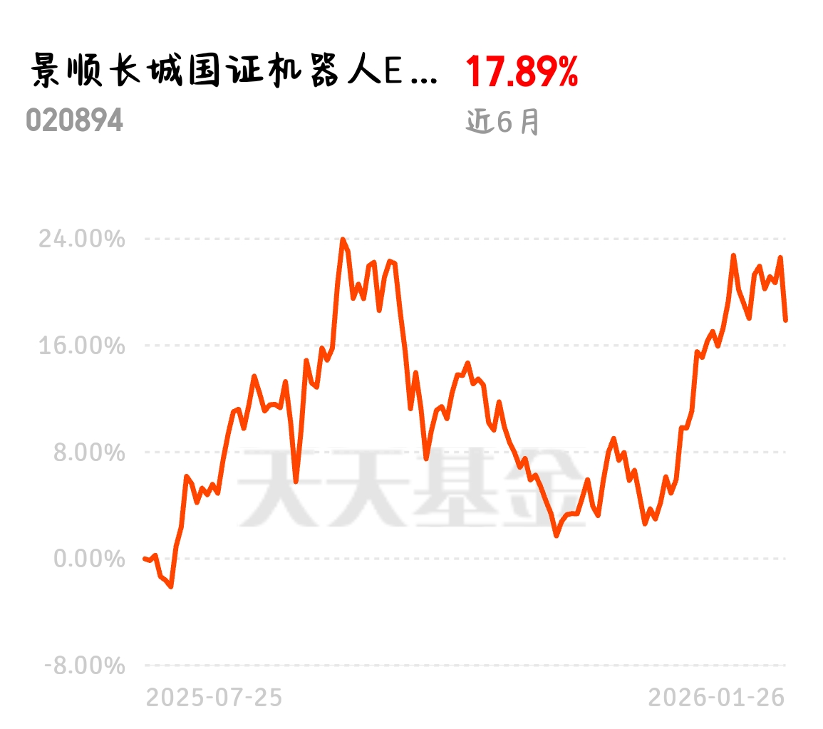 机器人板块今天还在调整,马克思都放话风口要来了,这时候正是上车好时机,景顺长城国证机器人 ETF 联接 C 近 6 月有 17.89% 的收益,而且 7 免规则超友好,拿着做波段灵活又划算,赶紧跟上布局节奏$景顺长城国证机器人ETF联接C$