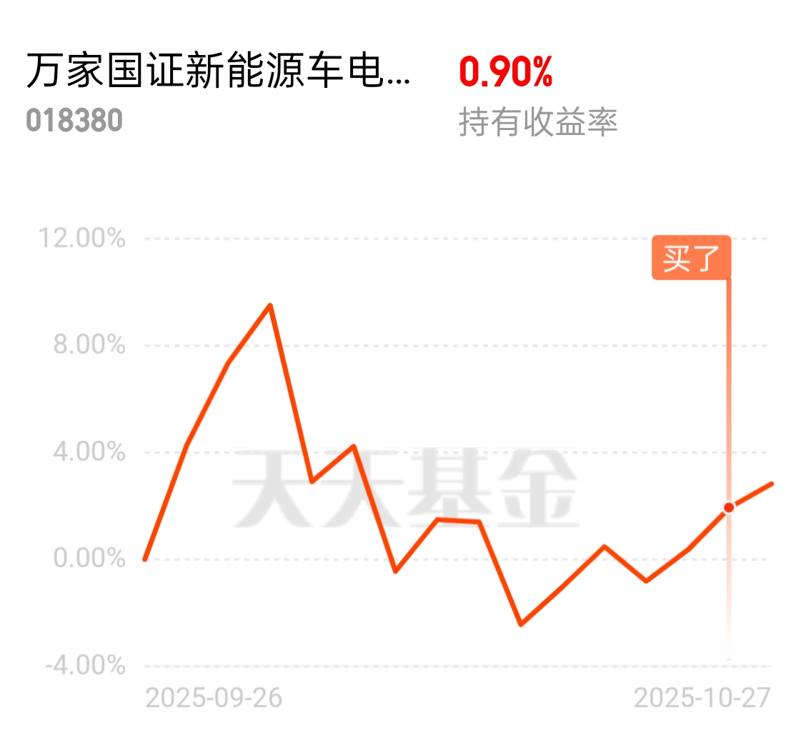 $万家国证新能源车电池指数发起式C$ 新能源车是未来发展的大趋势,电池行情一定错不了,继续上车一笔啦。