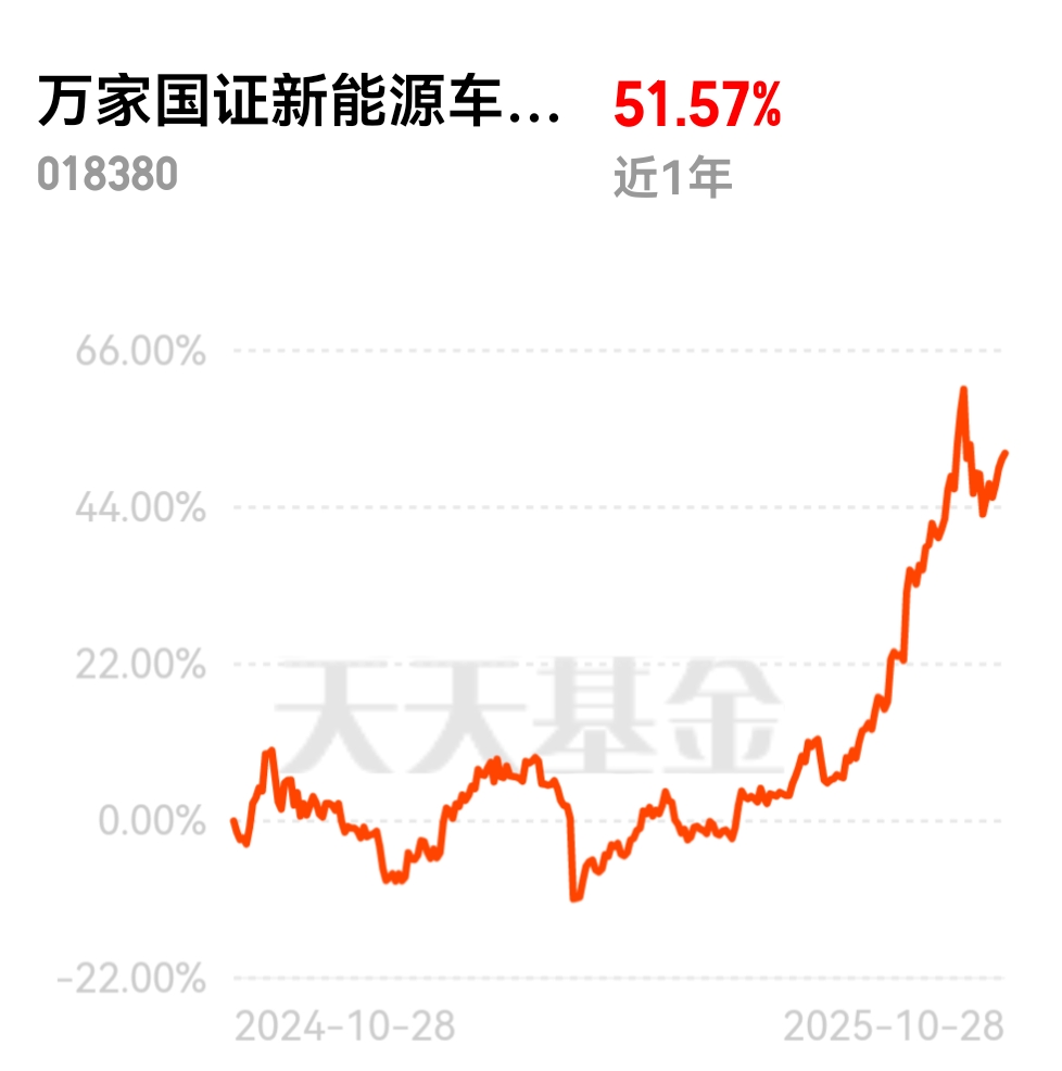 市场起起伏伏,还是安心待在新能源车里,等着收益$万家国证新能源车电池指数发起式C