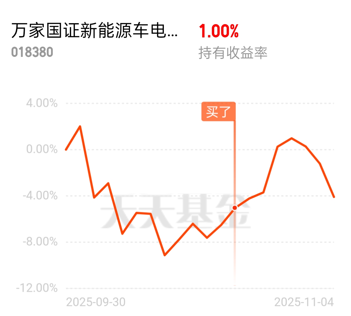 $万家国证新能源车电池指数发起式C$趁着电池板块最近调整,补仓一笔上车试试喽