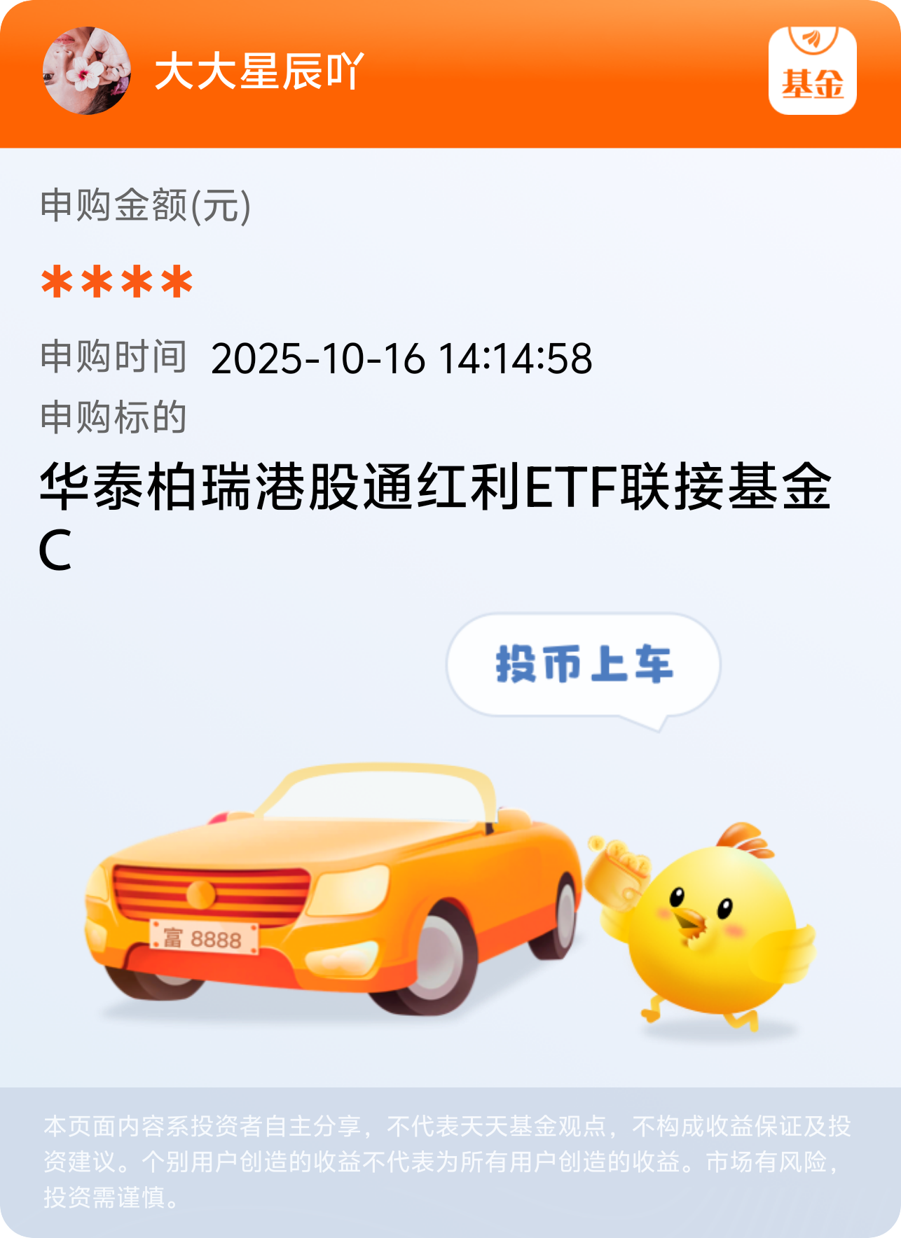 #晒操作# 最近这行情,不亏就是赚。$华泰柏瑞港股通红利ETF联接基金C$ 能连续涨3天真不容易,今天回调正好分批建点仓。