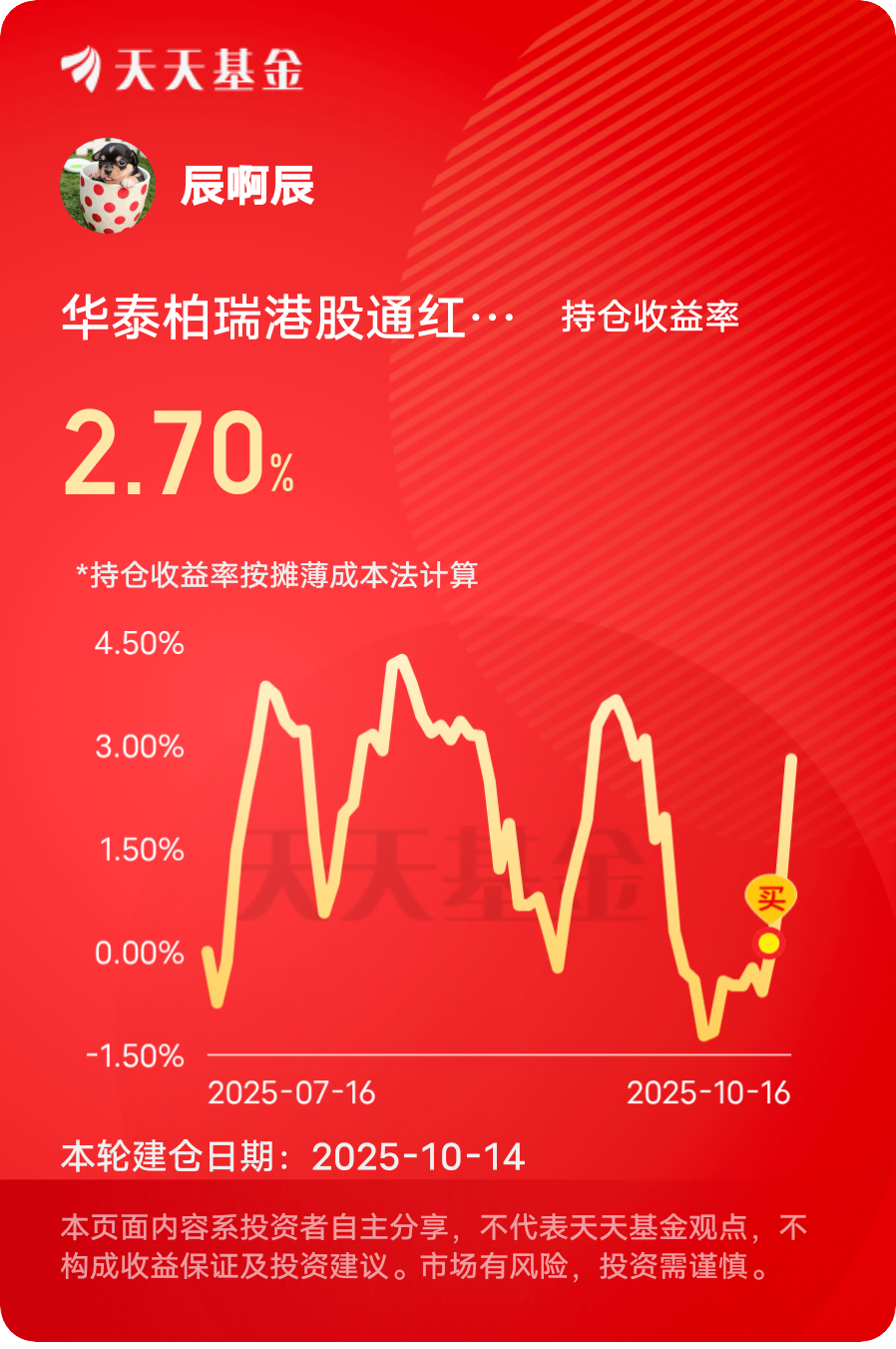 #晒收益# 港股的红利资产确实位置低,$华泰柏瑞港股通红利ETF联接基金C$ 华泰这只连续涨了3天,今天倒车接人,性价比看起来不错。