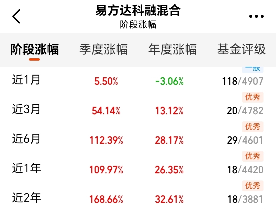 业绩优秀的基金不少$易方达科融混合$ 是其中比较优秀的,近5年排名1/1213,长期业绩验证专业能力,机构持有人占比达50%,认可度拉满。产品采用A+H全域投资策略,聚焦科技+新能源多元布局,有效规避单一赛道回撤风险。