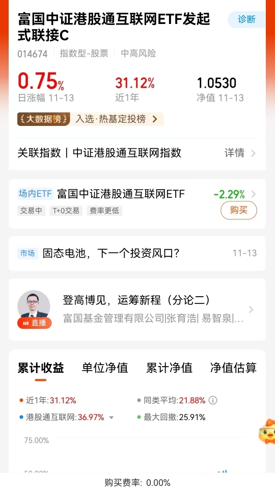 手里入手华泰柏瑞港股高股息,又配了点富国中证港股通互联网ETF联接C,看中它专注