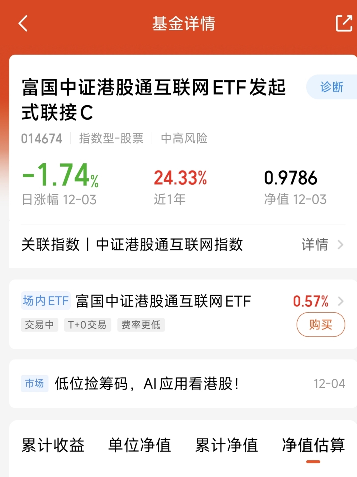 这段时间华泰那只高股息ETF联接C连着一个月在回条,就琢磨着搭配一下,加了点富国中证港股通互联网ETF联接C。它盘子不小,管着106亿呢,跟踪的是港股互联网龙头,像电商、社交、游戏这些核心板块。政策暖风频吹,大厂也频频回购,估值还在低位,南向资金也在持续流入这位置配点富国中证港股通互联网ETF联接C,感觉有点安全边际了。