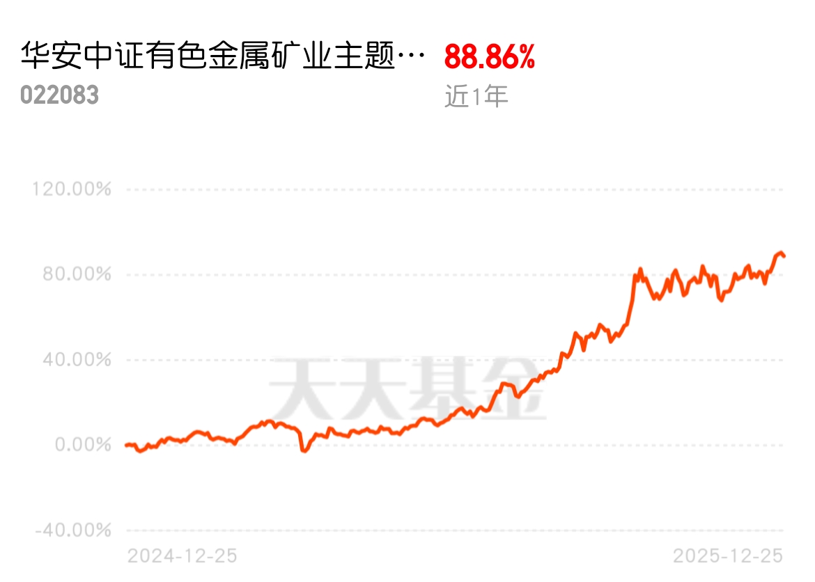 主打一个稳跟高景气,华安 022083 估值上涨 1.82%,近一年拿下 88.86% 收益,紧扣有色矿业指数走势,0 折申购,当下配置正合适$华安中证有色金属矿业主题指数发起式A$