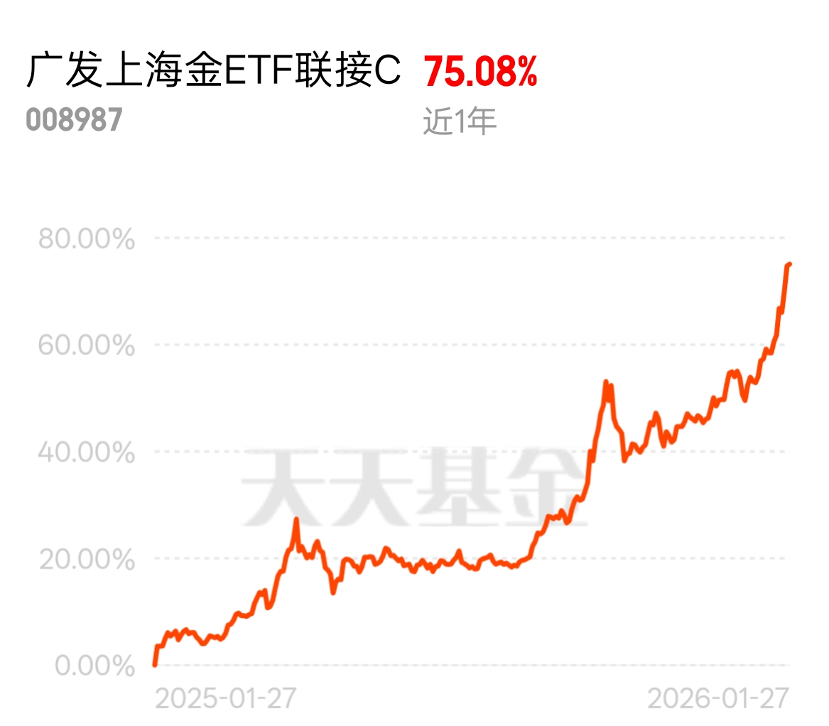 上海金又创新高!我手里拿的广发上海金C也跟着吃肉了,还是这种纯粹跟踪金价的产品省心,不用操心个股,趋势来了就能稳稳跟上,这波上涨算是把坚持拿住的逻辑给验证了。$广发上海金ETF联接C$