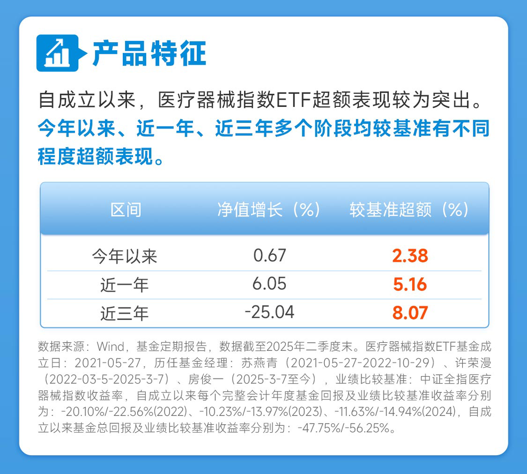 中泰证券分析表示,国内医疗器械行业依然处于快速发展阶段,短期医保控费在医疗器械领域可能带来负面影响,但该机构依然看好创新驱动下的进口替代以及全球化发展,当前时间点预计多重负面影响正在充分释放,2025Q3有望迎来器械板块阶段性拐点。