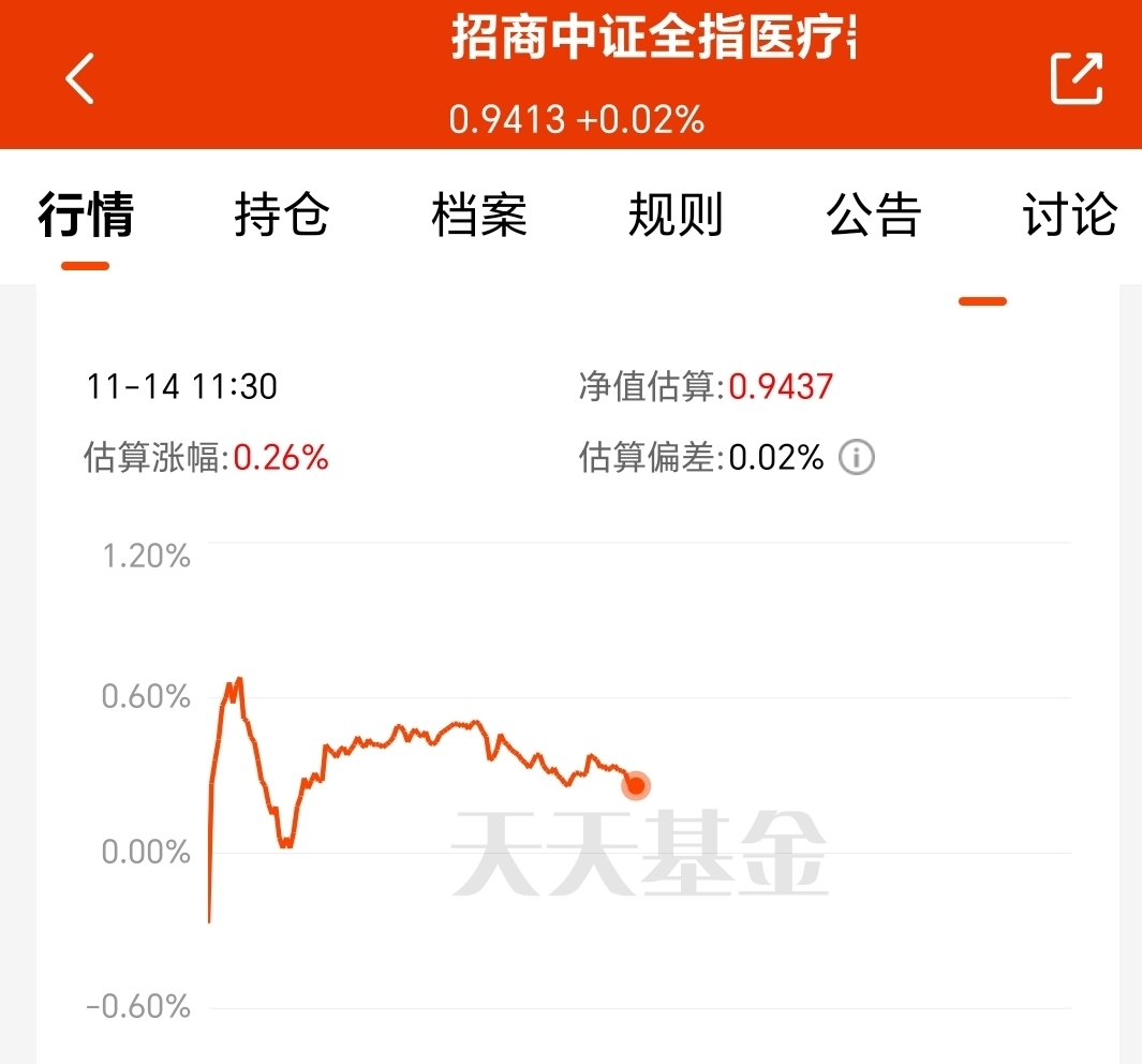 今日$招商中证全指医疗器械ETF发起式联接C$ 逆势小红,截至午间收盘,预计上涨0.26%。