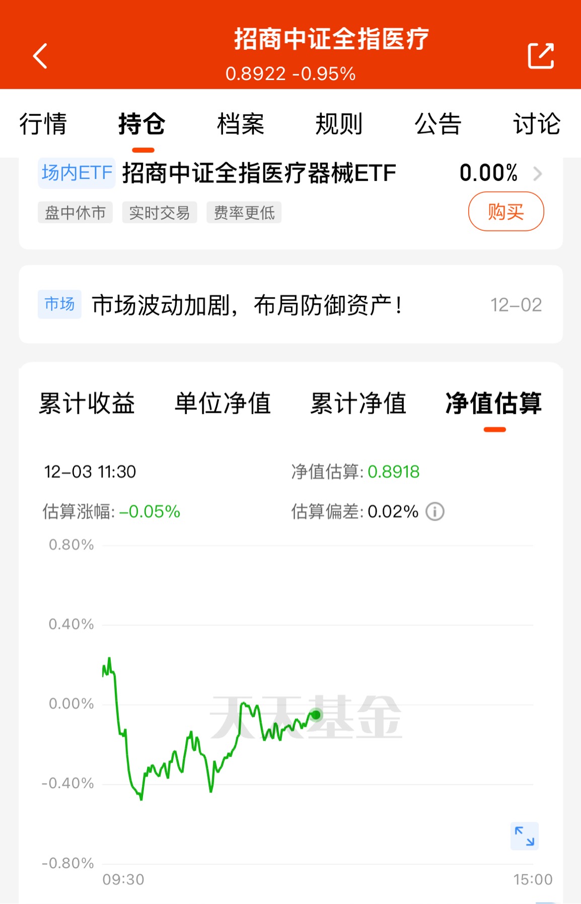 虽然说今天市场又震荡了,但我长期看好医疗赛道还是很有信心的,今天我看$招商中证全指医疗器械ETF发起式联接C$ 近期处于低位反弹,我觉得现在医疗器械行业持续处于快速发展阶段,长期看好创新驱动下的进口替代以及全球化的发展,当前时间医疗器械板块多重负面影响在充分释放,后续拐点很快来到,继续看好