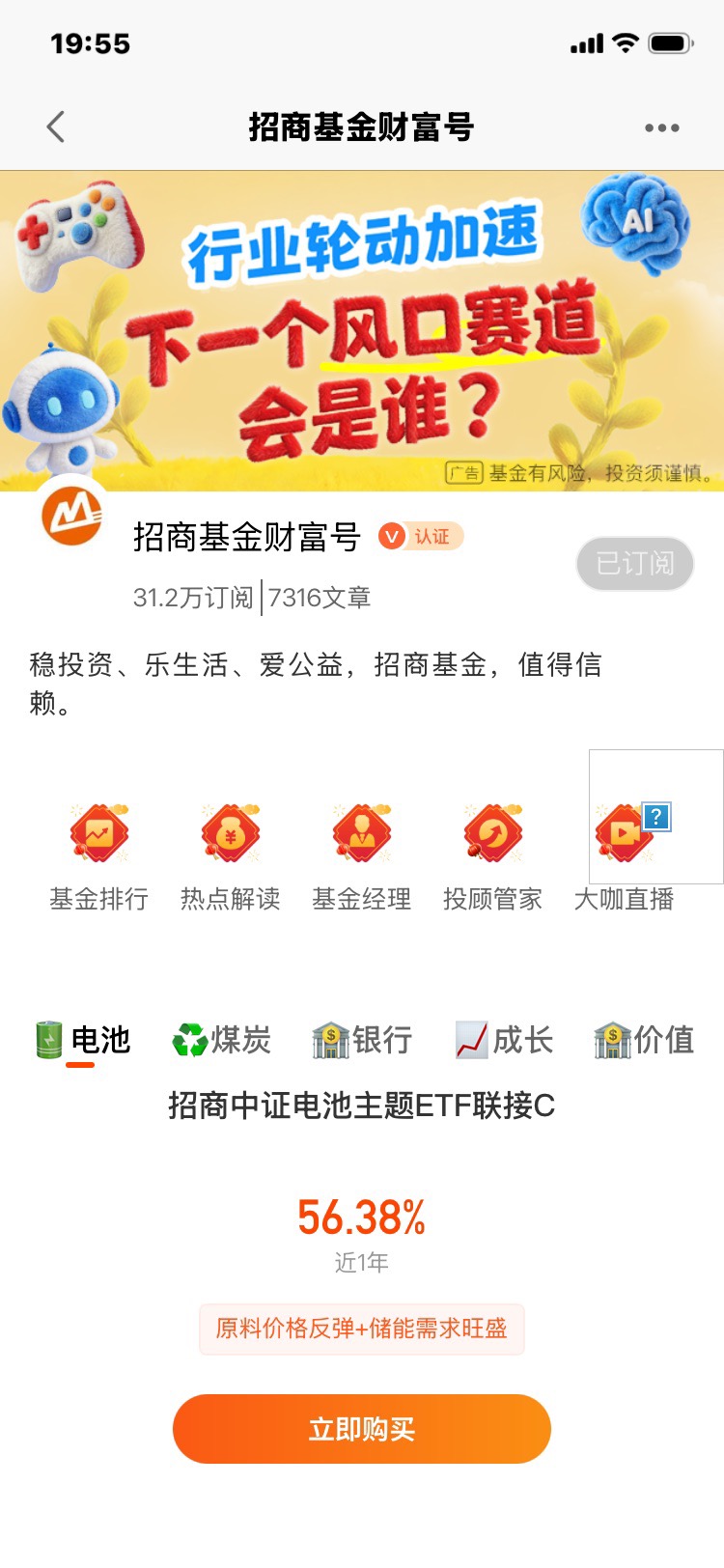 #下个风口赛道#$招商体育文化休闲股票C$$招商中证全指医疗器械ETF发起式联接C$$招商中证机器人ETF发起联接C$