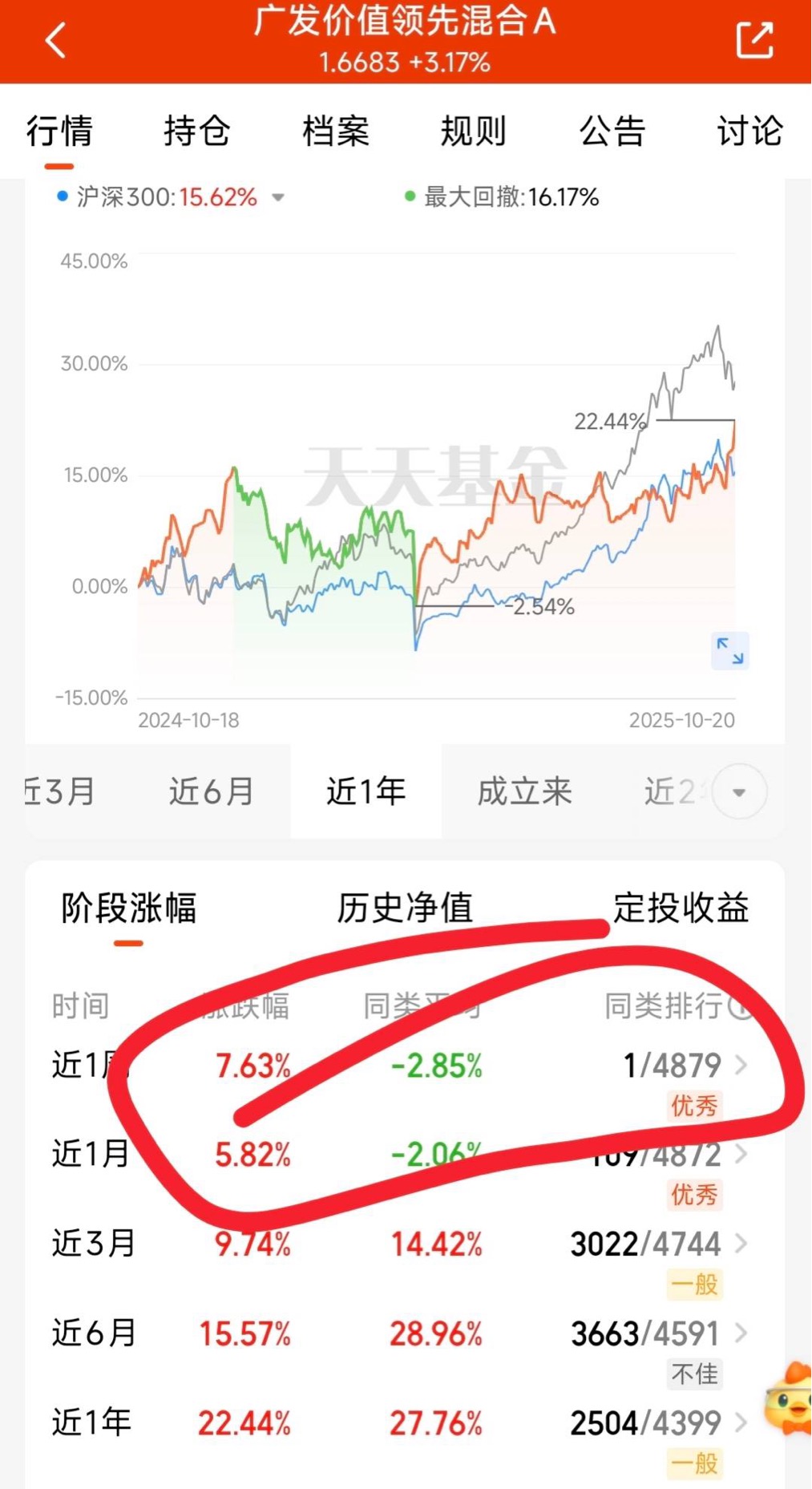 之前就听说$广发价值领先混合A$能涨,今天看近一周涨幅排第一了,够牛的!