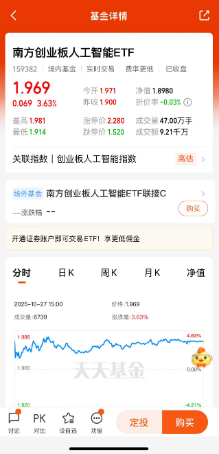 早盘光模块板块就很活跃,生益科技、东山精密这些也都涨了5个点以上。景旺电子更是涨停了。这种整个板块都动起来的情况,通过基金参与可能更省心。像$南方创业板人工智能ETF联接A$(024725)这样的,它挂钩的场内份额159382今天也涨了3%多,说明它投的那些公司整体表现不错。现在这个时点,基金还在建仓期,操作上可能灵活些。对于觉得人工智能方向不错,但又怕单一个股波动大的,这种打包了一篮子相关公司的基金,算是个可以考虑的途径,能跟着板块一起走。而且这基金明天3点就结募了,说白了也就一天的机会。#科技热点摊开业啦#