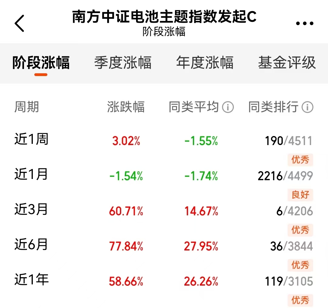 最近好多人在问为啥电池主题基金这么猛,我琢磨了一下,$南方中证电池主题指数发起A$(018926)之所以能打,主要是押对了技术升级的方向。固态电池的进展比想象中快,这基金持仓里相关标的比例不低,而且近六个月涨了78%,说明资金早就开始布局了。别看前几天指数回调,但行业基本面其实在好转,之前的内卷问题慢慢缓解,企业利润空间也出来了。对于咱们普通持有者来说,这种调整反倒像是给上车机会,毕竟趋势一旦形成,不会轻易结束。#大消费板块逆市拉升!行情能否持续?#