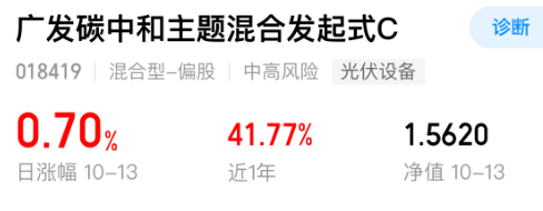 我加仓$广发碳中和主题混合发起式C(OTCFUND|018419)$1000元,这只重仓电力设备,覆盖光伏、电网、电池等碳中和产业链核心环节,持仓更侧重光伏和储能,前10大重仓股占比超58%,持股集中度比较高,主升行情中涨幅弹性更大!