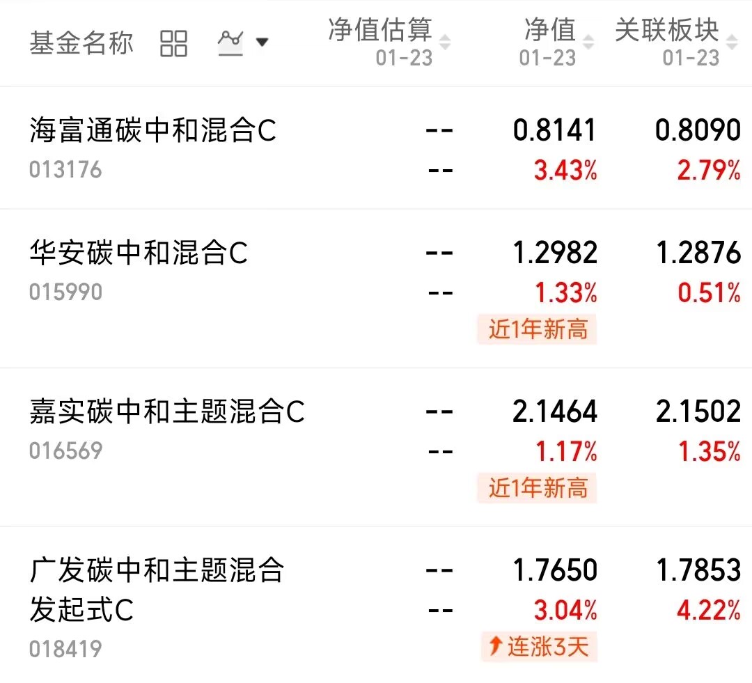 市场行情回暖,整个板块都是轮动上涨,今天的碳中和板块出现了一定的上涨力度。海富通碳中和基金今天上涨3.43%,$华安碳中和混合C(OTCFUND|015990)$上涨1.33%,$嘉实碳中和主题混合C(OTCFUND|016569)$上涨1.17%。