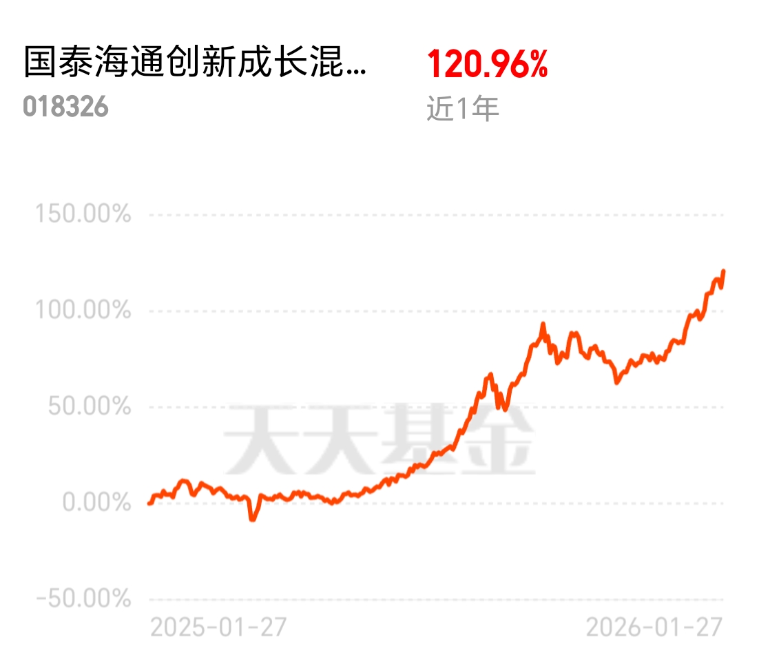 国泰海通创新成长混合发起C的收益表现太能打了,近1年120.96%,短期涨势喜人