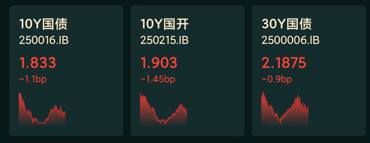 十年期国债收益率:1.833%,-1.1BP(国债收益率越跌,债市越涨)