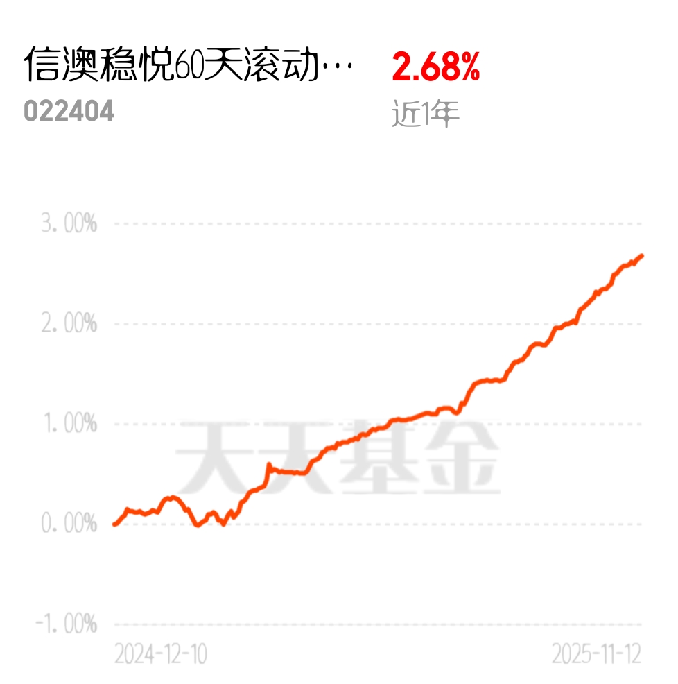 大家都在找好基,债市也给力争气信澳稳悦60天凭真本事吃饭,一年变化2.68%远超银行,闲钱放这儿感觉更值