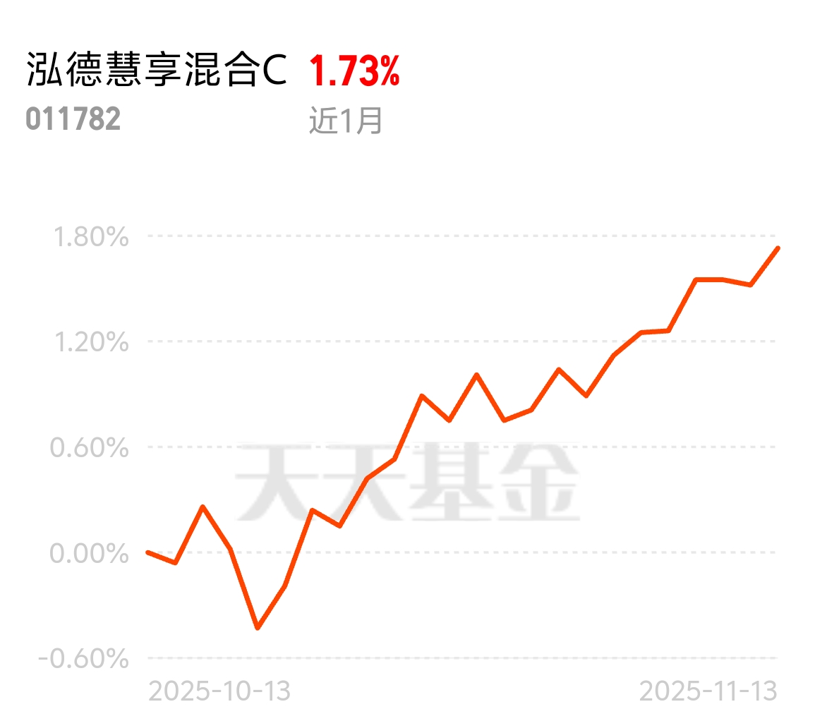 泓德慧享这款固收+产品真不错,今天又涨了0.21$泓德慧享混合C$