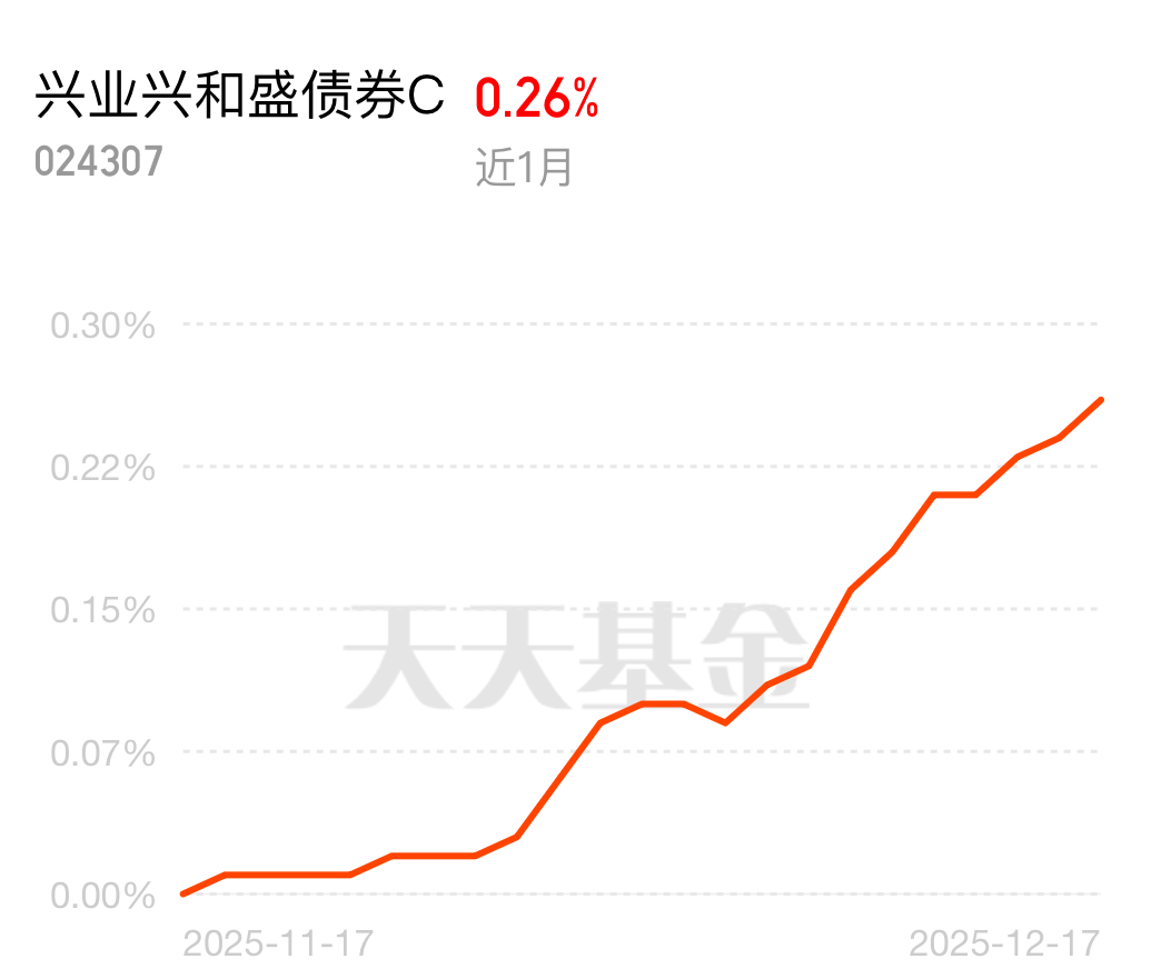 市场行情反复,很多债基让人捉摸不透。先求稳再求赚准没错,$兴业兴和盛债券C$ 近 1 个月 26 个蛋,连红走势太喜人,不挨打还能赚收益,这样的债基必须冲!