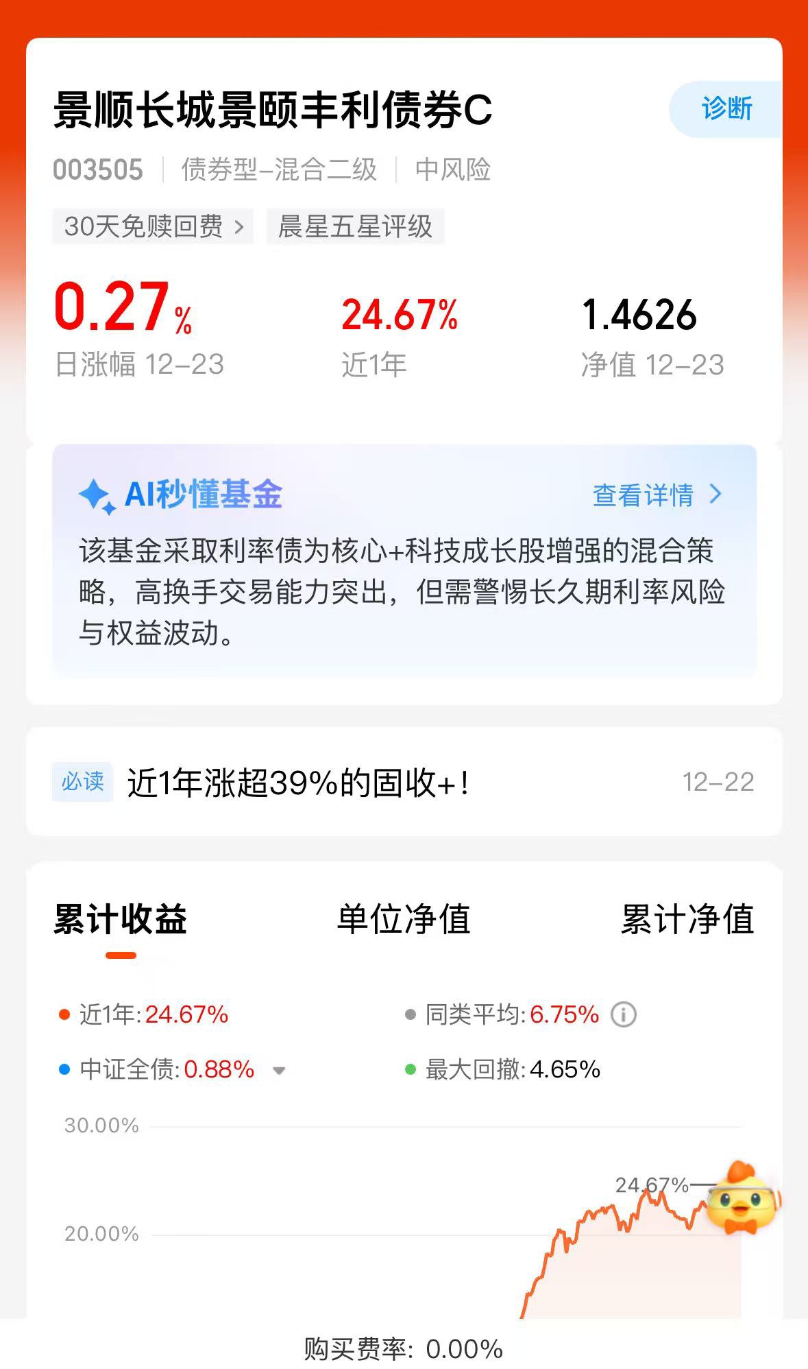 年底市场风格轮动,想求稳但是又想搏点收益,景顺这种含科技的混债正合适,债基打底,