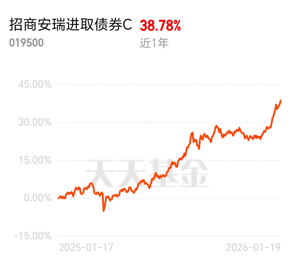 现在固收 + 基金遍地都是,但真正能打的没几个,招商安瑞进取债券 C 表现突出。近 1 年 38.78% 的收益比很多固收 + 都给力,纯债转过来太对了,固收安全有保障,权益收益添惊喜。