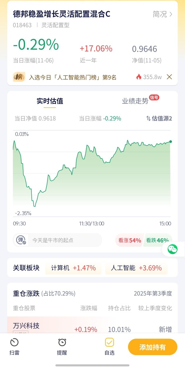 德邦稳盈增长灵活配置混合今日预估涨幅-0.29%!市场波动中,保持耐心等待反弹
