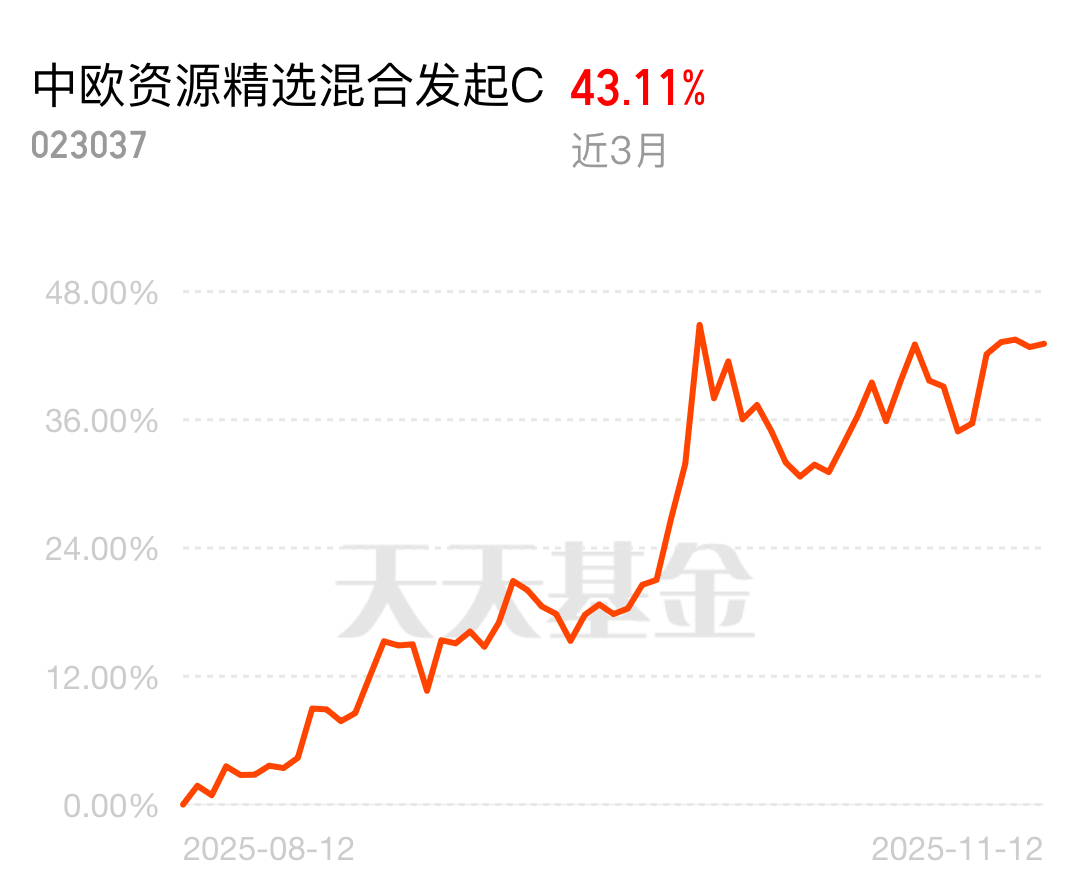 市场资金都在追捧有政策和产业支撑的板块,资源类就是佼佼者。中欧资源精选混合C近3