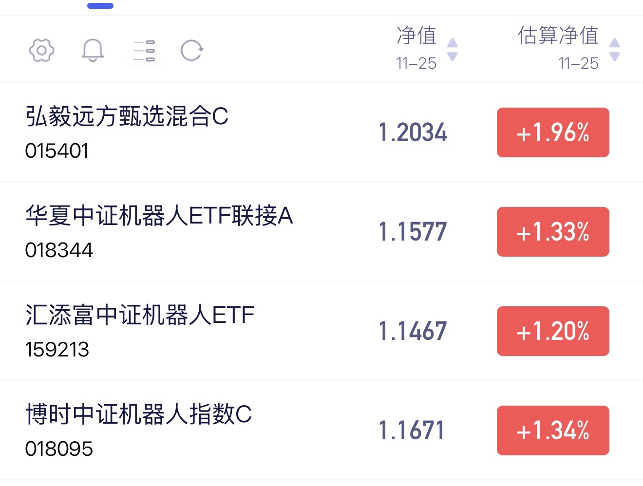 今天机器人继续稳稳上涨还是挺厉害的呢,我在看的这个弘毅远方甄选C这只人形机器人涨幅走势还是可以的呢,车上的友友们今天又要吃肉了,目前估值涨幅1.96%这个业绩不错的呢,这个机器人的盘子虽然小,不过弹性还是挺大的。最近机器人行情还是可以的,我准备上车了
