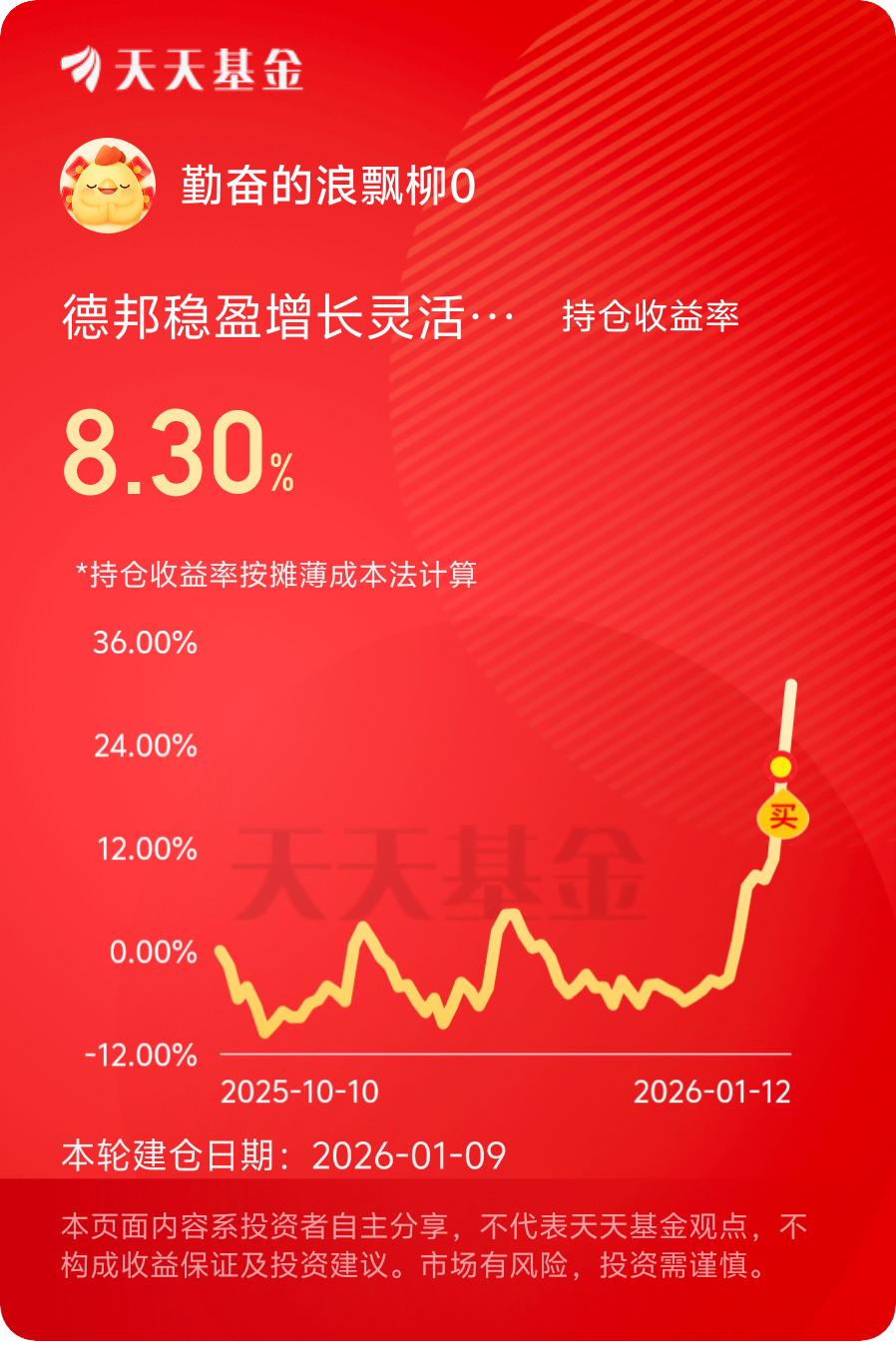 现在还是AI应用给力啊,又吃了8个多点,业绩杠杠的,继续加仓冲呢$德邦稳盈增长灵活配置混合C$ #晒收益#
