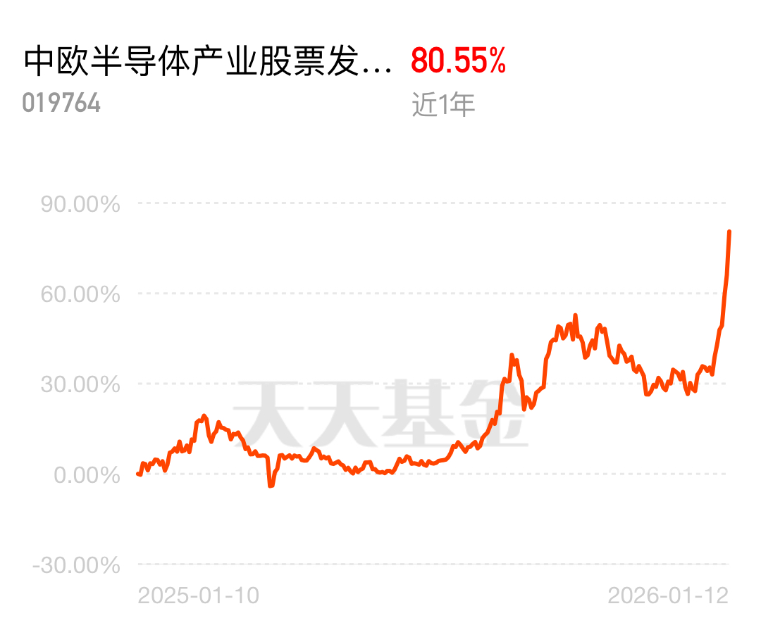 巨型星座组网加速,2026 年卫星发射频次将大幅提升!科技轮动快不如主线稳,商业航天就是当前最优解。中欧半导体产业股票发起 C 近 1 年 80.55%,近一周涨 26.3%,估值虽不准但净值走强,回调上车正合适。$中欧半导体产业股票发起C$