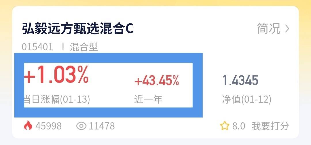 机器人行情再度起飞,车上的兄弟们还是不错的呢!我在看的这个弘毅远方甄选C阶段业绩也都是领先在前的呢!近六月涨幅高达51.41%呢,涨幅还是可以的呢,看得我心痒痒的,这只盘子不大,弹性还是挺猛的,继续看好了!
